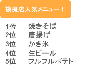 特に人気が高かったのは、お子様から大人まで楽しめる「縁日ゲーム」・「縁日屋台の模擬店」です!