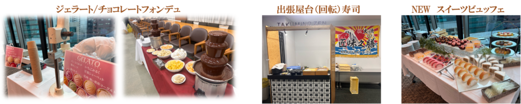 お寿司の握りやローストビーフのカッティングなど、視覚でも楽しめる"ライブ感"が、パーティーを一層盛り上げます。 -